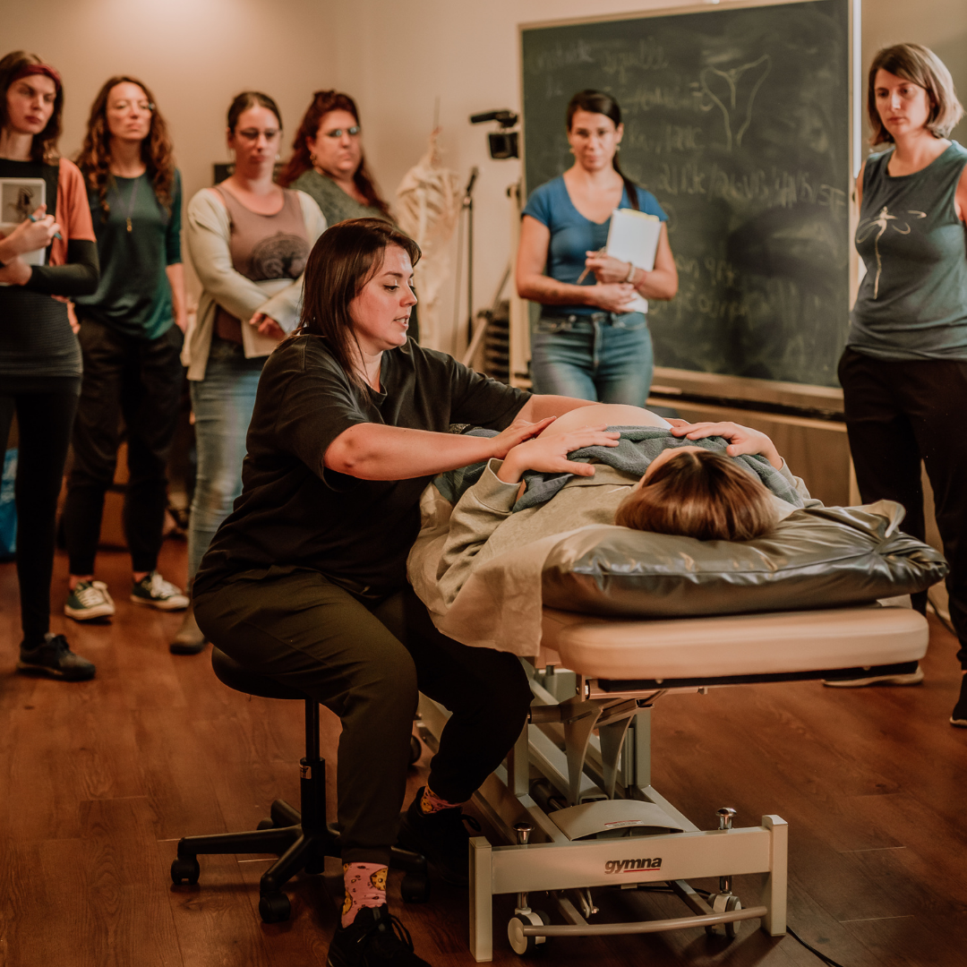 la localisation et palpations des ligaments et des muscles du bassin et de l'utérus